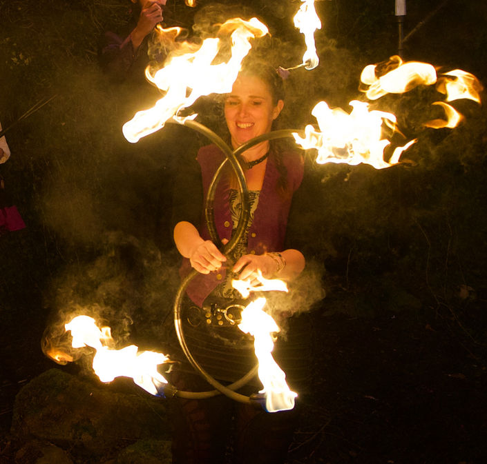 First debuted at burning man 2019. Summer enjoys the daily practice and community connection gained by fire spinning. Her first love is fire fans but has grown to also play with buugeng, fire hoop and fire staff.